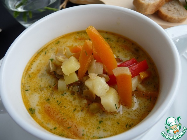 Рецепт «Суп с чечевицей и сыром»:
