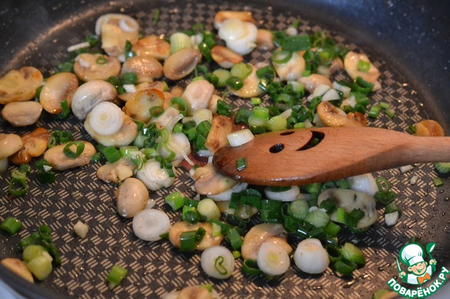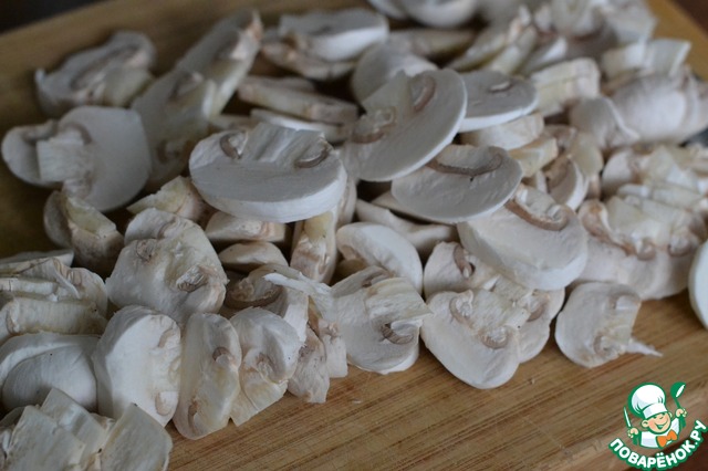 Откладываем 2/3 шампиньонов в отдельную миску.