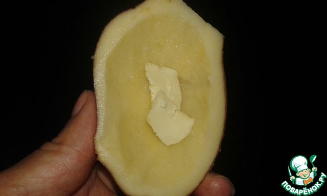 Каждую лодочку немного присолить изнутри и в каждую положить маленький кусочек сливочного масла. |