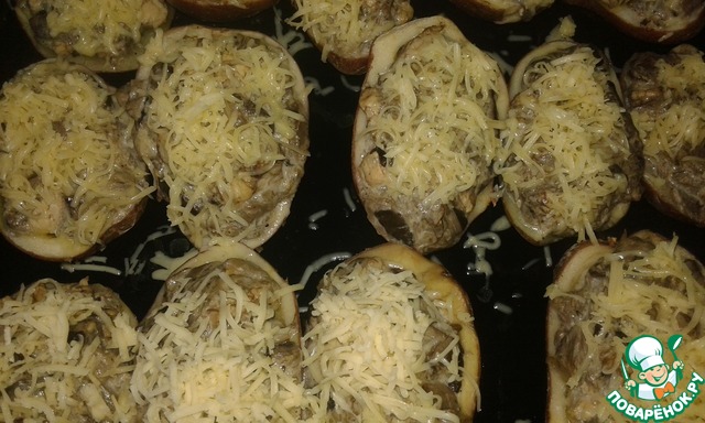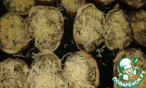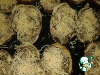 Ставим лодочки в разогретую до 250 градусов духовку. Через 10 минут достаем и посыпаем тертым сыром. И еще минут на 15 в духовочку, чтобы картофель как следует пропекся. |