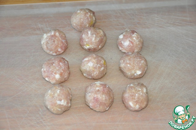 Из фарша делаем фрикадельки размером с грецкий орех. -