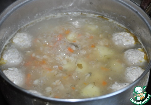Рецепт «Рассольник с фрикадельками и овсяными хлопьями»: