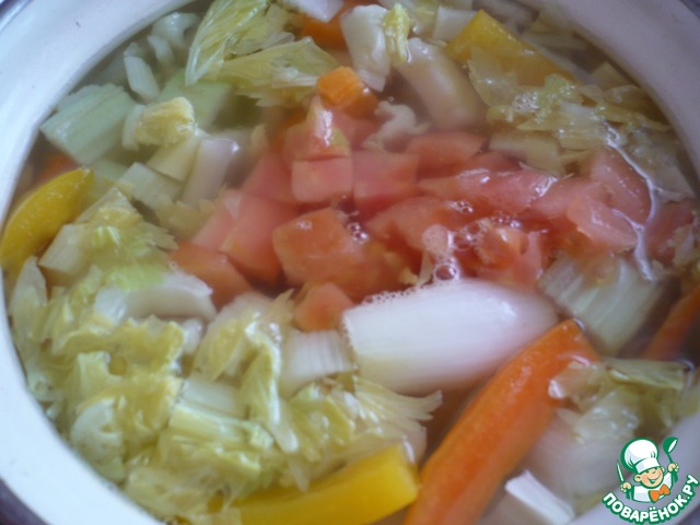 - Бульон (овощной) — 2 л