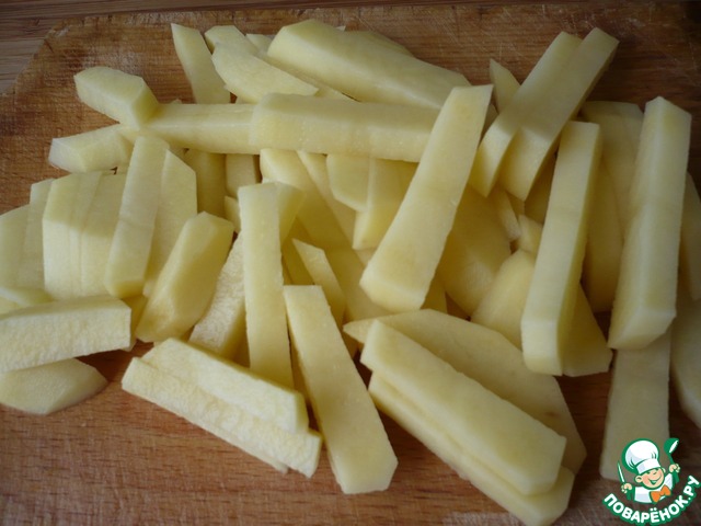 Тем временем готовим овощи для супа: нарезаем картофель брусочками.