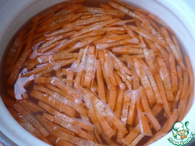 Морковь нарезать соломкой.