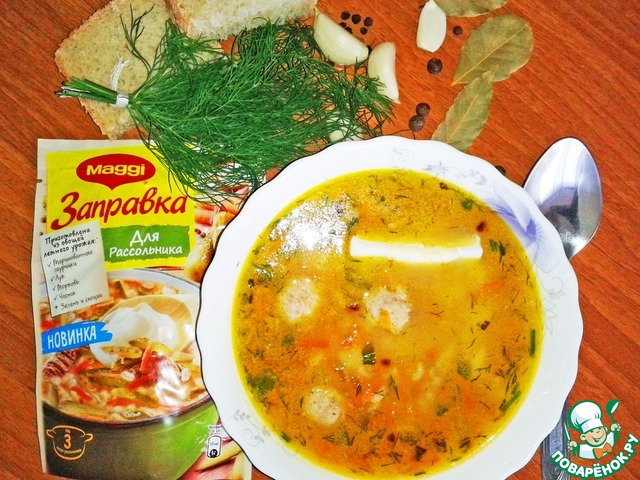 Рецепт «Рассольник с фрикадельками и заправкой»: