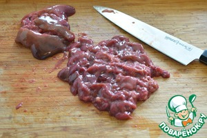 Куриную печень промойте, обсушите салфеткой и нарежьте мелко