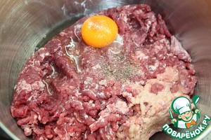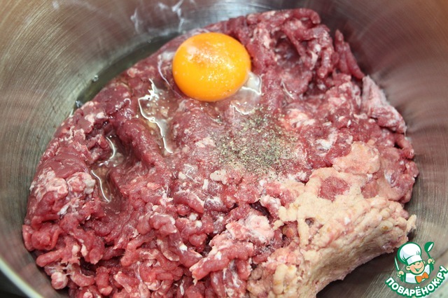 Говядину вместе с замоченными в воде (молоке) ломтиками хлеба пропустить через мясорубку