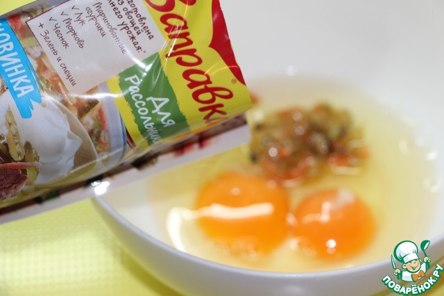 2-3 куриных яйца взбить с 1 ч л приправы Магги для рассольника