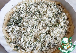 • Разложить по поверхности теста творог с зеленью.