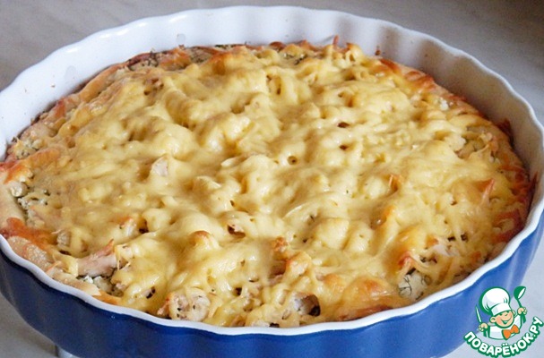 Такая своеобразная пицца получается..Но всё-таки,лучше творог с куриным мясом не смешивать-не сочетаются они..Творог отдельно-творожный пирог с зеленью,с курицей-курник.
