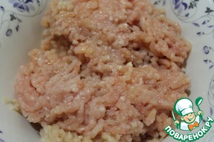 Добавим пшено, посолим, хорошо вымесим фарш.