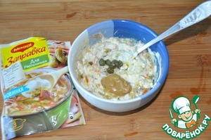 Готовим импровизацию соуса "Тартар". Смешиваем сметану и MAGGI "Заправка для Рассольника".