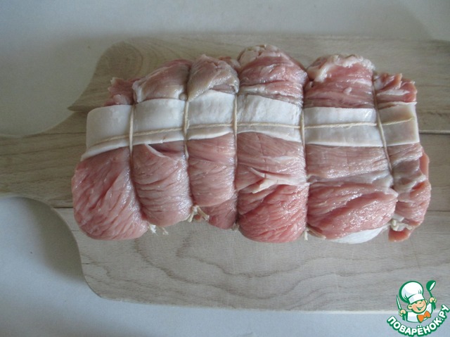 Цельный кусок телятины (1 кг) помыть, обсушить и закрепить кулинарной нитью.