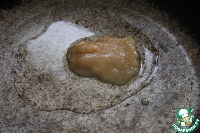 В глубокой сковородке или сотейнике прогреть растительное масло и мед