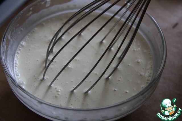 Приготовить соус для заливки: смешать сливки, муку и горчицу. Хорошо размешать.