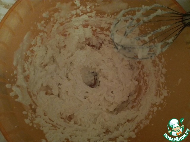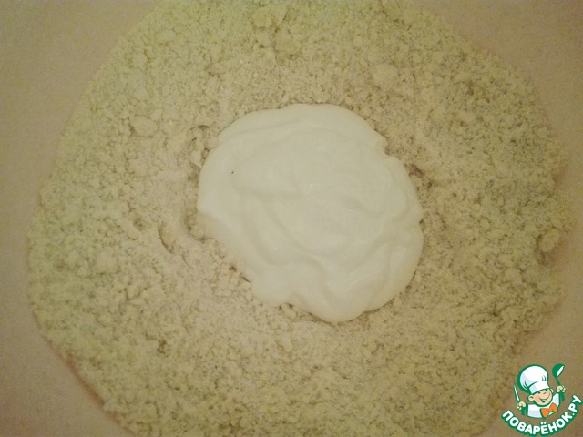 3. Добавьте сметану (у меня 18% жирности). Замесите тесто.