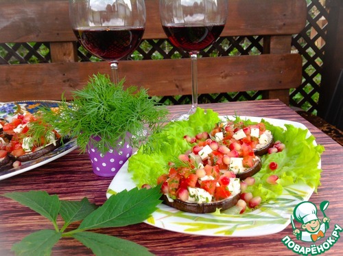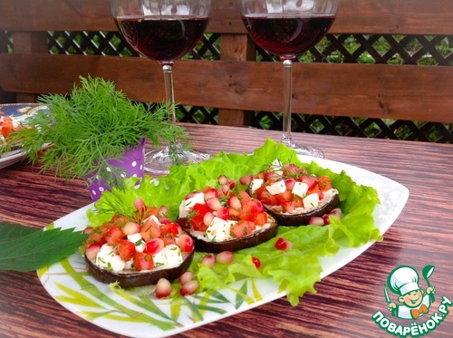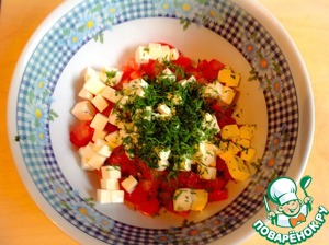 Сверху выложить помидоры с Фетой. При желании полить оставшимся маринадом.
