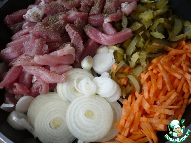 Рецепт «Тушеная свинина с солеными огурцами»: