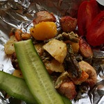 Разместить пакеты из фольги на хорошо разогретый гриль и готовить до готовности, около 15-20 минут.