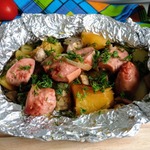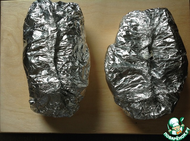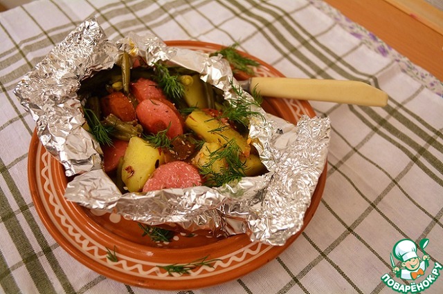 Рецепт «Картофель с сардельками и фасолью в фольге»: