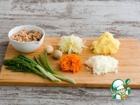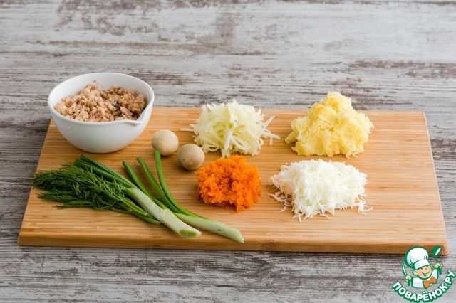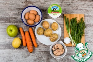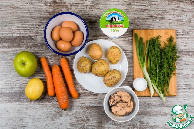 Ингредиенты для "Слоеный салат с консервированной горбушей":