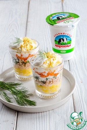 Рецепт «Слоеный салат с консервированной горбушей»: