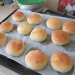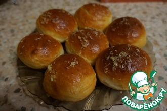 Готовые булочки выложить на решетку, я слегка сбрызнула их водой (это совсем не по рецепту и необязательно).