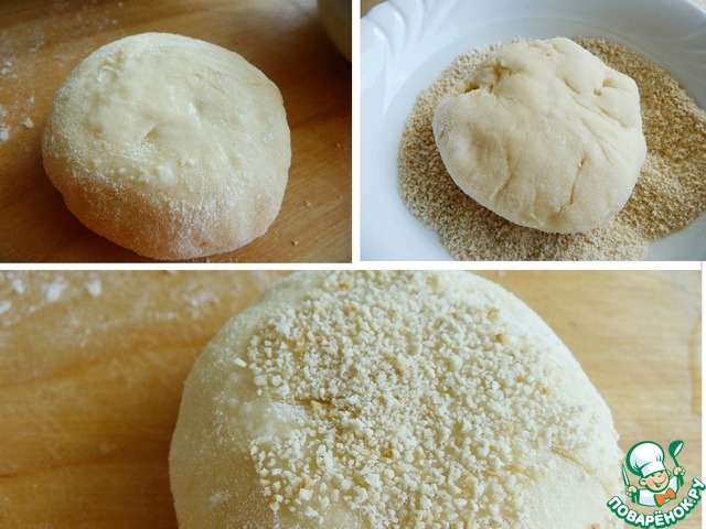 Каждую заготовку слегка смочить водой, наружную часть будущей булочки опустить в панировочные сухари.