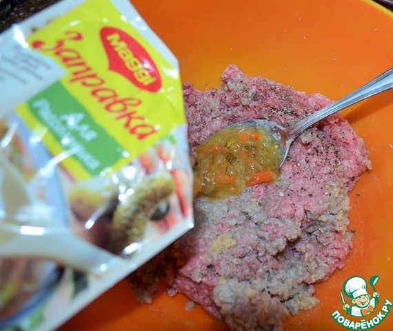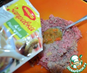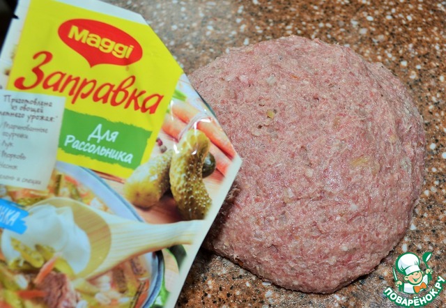 В фарш добавить заправку "Для Рассольника"от Маggi, не солить.