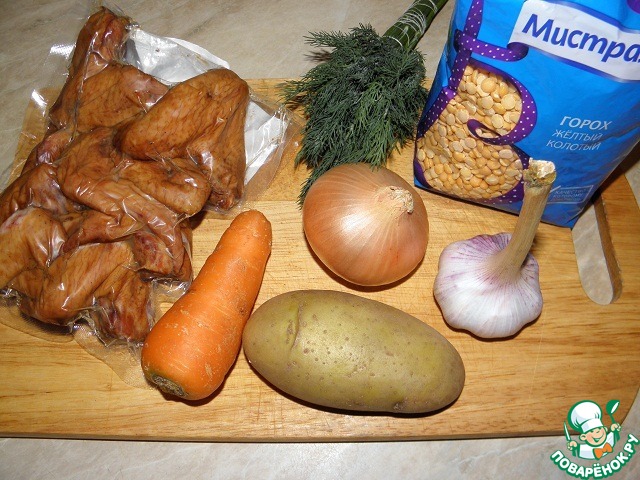 Ингредиенты для «Гороховый суп с копчеными крыльями»: