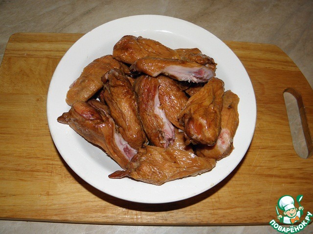 Единственное вместо крылышек добавила копченую куриную грудку. Так как свежих крылышек в магазине не оказалось.