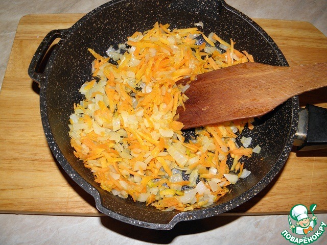 Далее выкладываем овощную зажарку, солим и варим минут 10