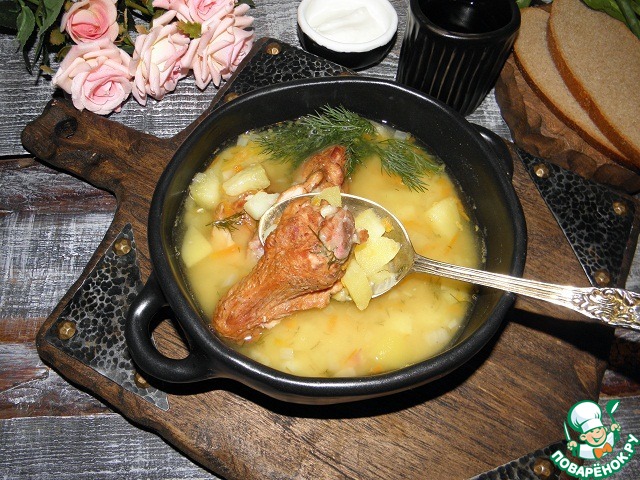 Рецепт «Гороховый суп с копчеными крыльями»: