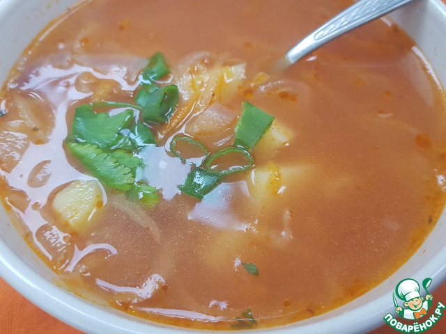 [+2]В ингредиентах не указан картофель ( а в описании он есть), я положила 2 средних картофелины. Также не указано кол-во свежей капусты, я положила "на глаз" примерно столько же, сколько квашеной. Делала на трёхлитровую кастрюлю, воды около 2 литров нужно на всё про всё. Рецепт достоин внимания, присмотритесь.