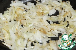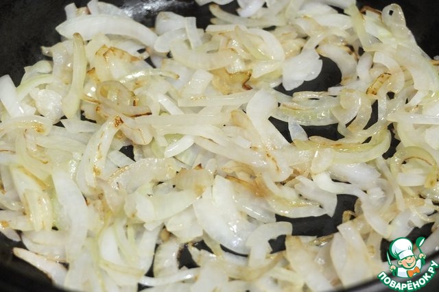 Луковицу, я брала крупную, нарезаем четвертинками и обжариваем в растительном масле до золотистого цвета.