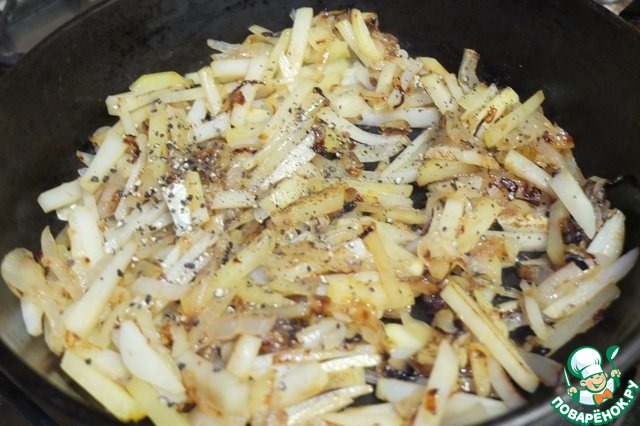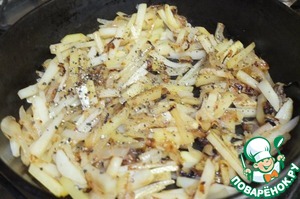 Обжариваем до готовности картофеля. Солим, перчим по вкусу.