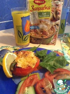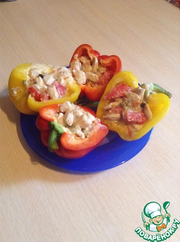 И по поводу названия - нашла этот рецепт, когда искала, чтобы такого приготовить из курицы. Поэтому, если бы он был в категории фаршированных овощей, не видать бы мне этого замечательного блюда. Это именно курица запеченная в половинке болгарского перца. Очень вкусная курица, как в горячем, там и в холодном виде. Тем, кто еще не решился попробовать этот рецепт, настоятельно рекомендую.