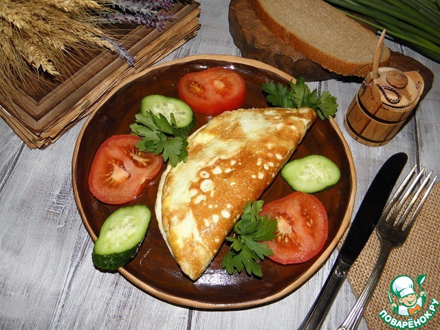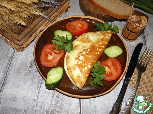 Накрыть второй половиной омлета, секунду прогреть и переложить в тарелку