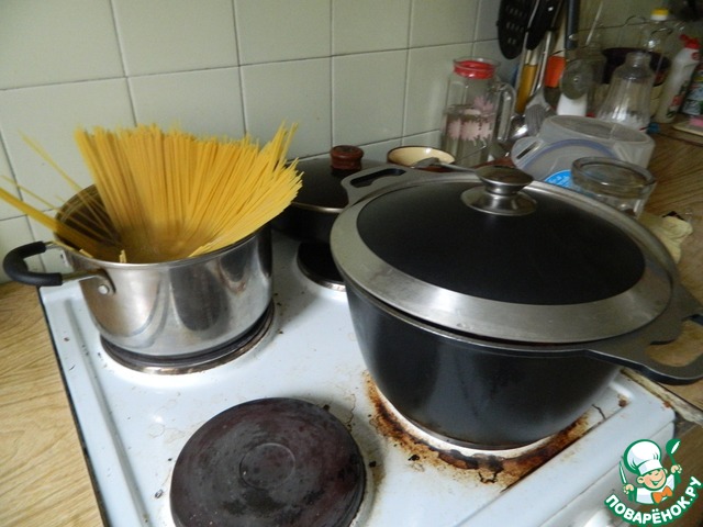 В отдельной кастрюле варим пасту.