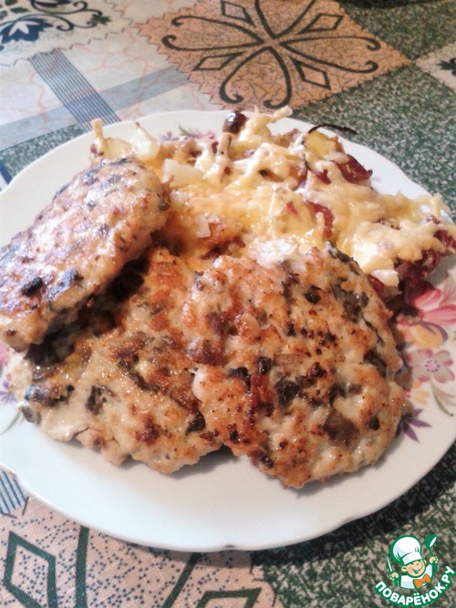 Рецепт «Рубленые котлеты из курицы и грибов»: