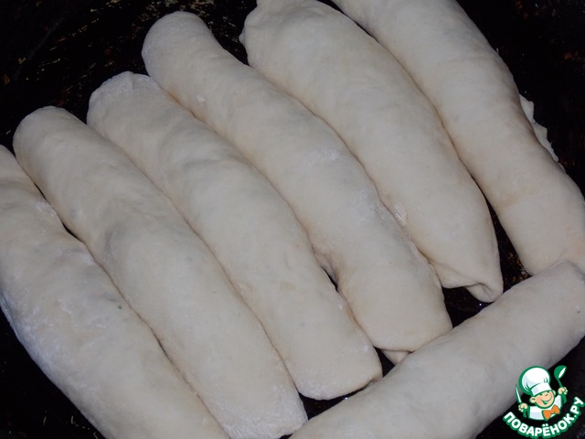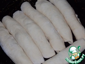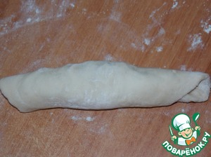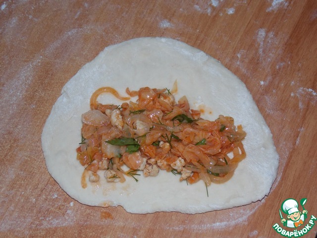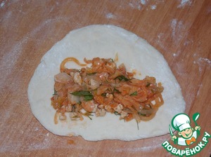 • Разделить тесто на кусочки, раскатать, выложить начинку.