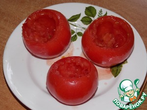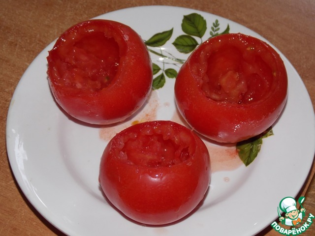 У помидоров убрать серединку и выложить приготовленную начинку.