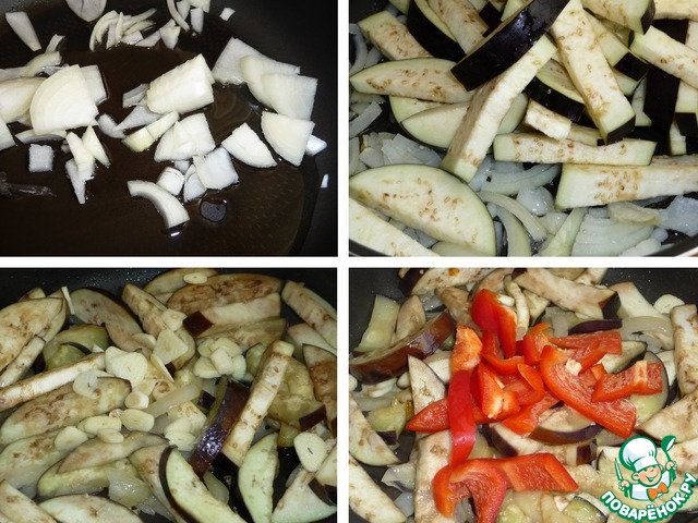 добавить баклажаны, обжарить, они должны стать мягкими, но не горелыми,