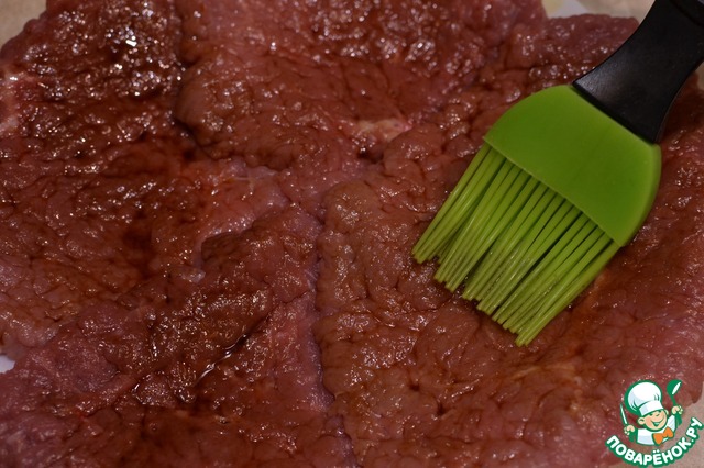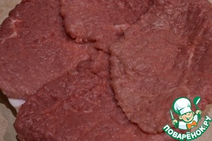 Мясо нарезаем кусочками не толще 1 см. хорошенько отбиваем