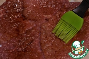Смазываем каждый кусочек с обеих сторон соевым соусом