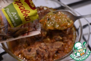 Затем равномерно распределяем заправку MAGGI для рассольника, и отправляем в духовку еще на 10 минут