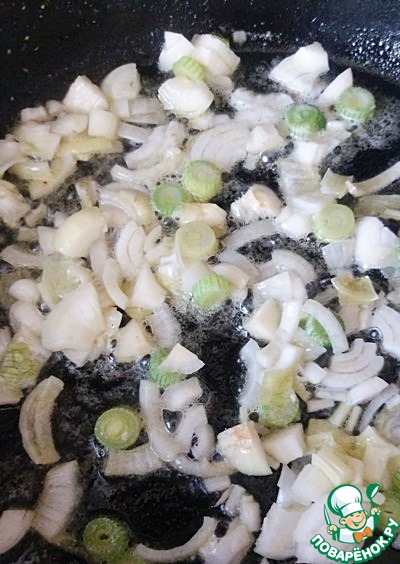 В сковороде разогреть сливочное и подсолнечное масло. Добавить порезанный лук и обжарить его до мягкоти. Придавать золотистый цвет не стоит, т. к все будет измельчаться в пюре. Добавить чеснок, специи и прогреть еще минуту.