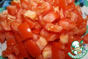 Помидоры и брынзу нарезать квадратиком.