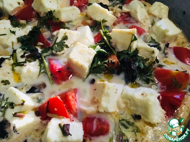 Смешать яйца с молоком, посолить чуть чуть, т. к. у нас брынза соленая и поперчить по вкусу.